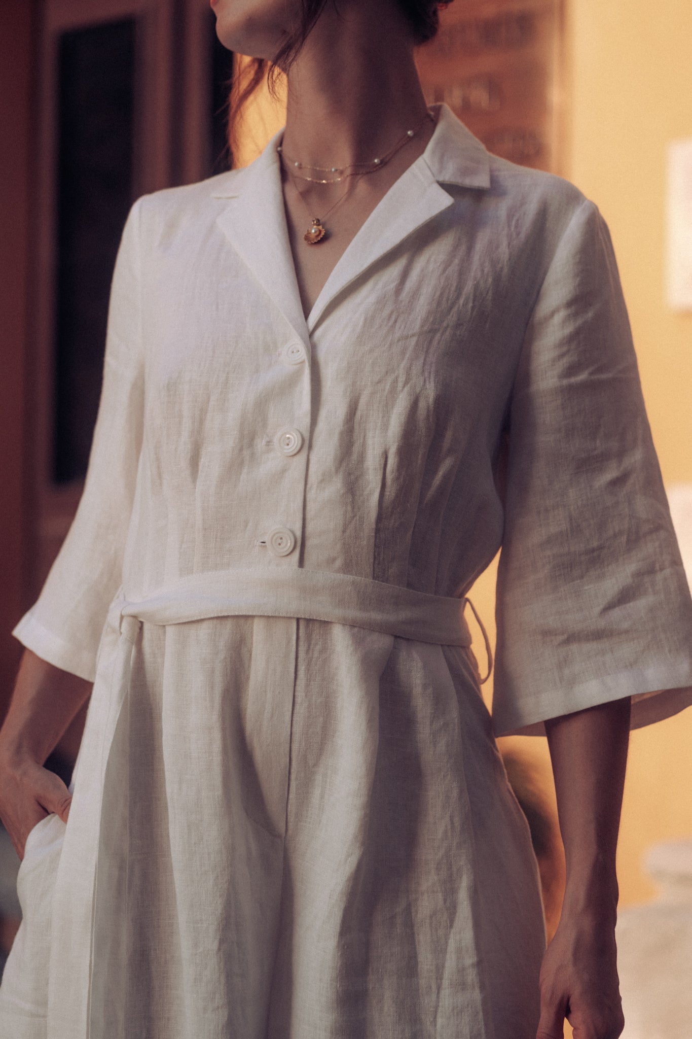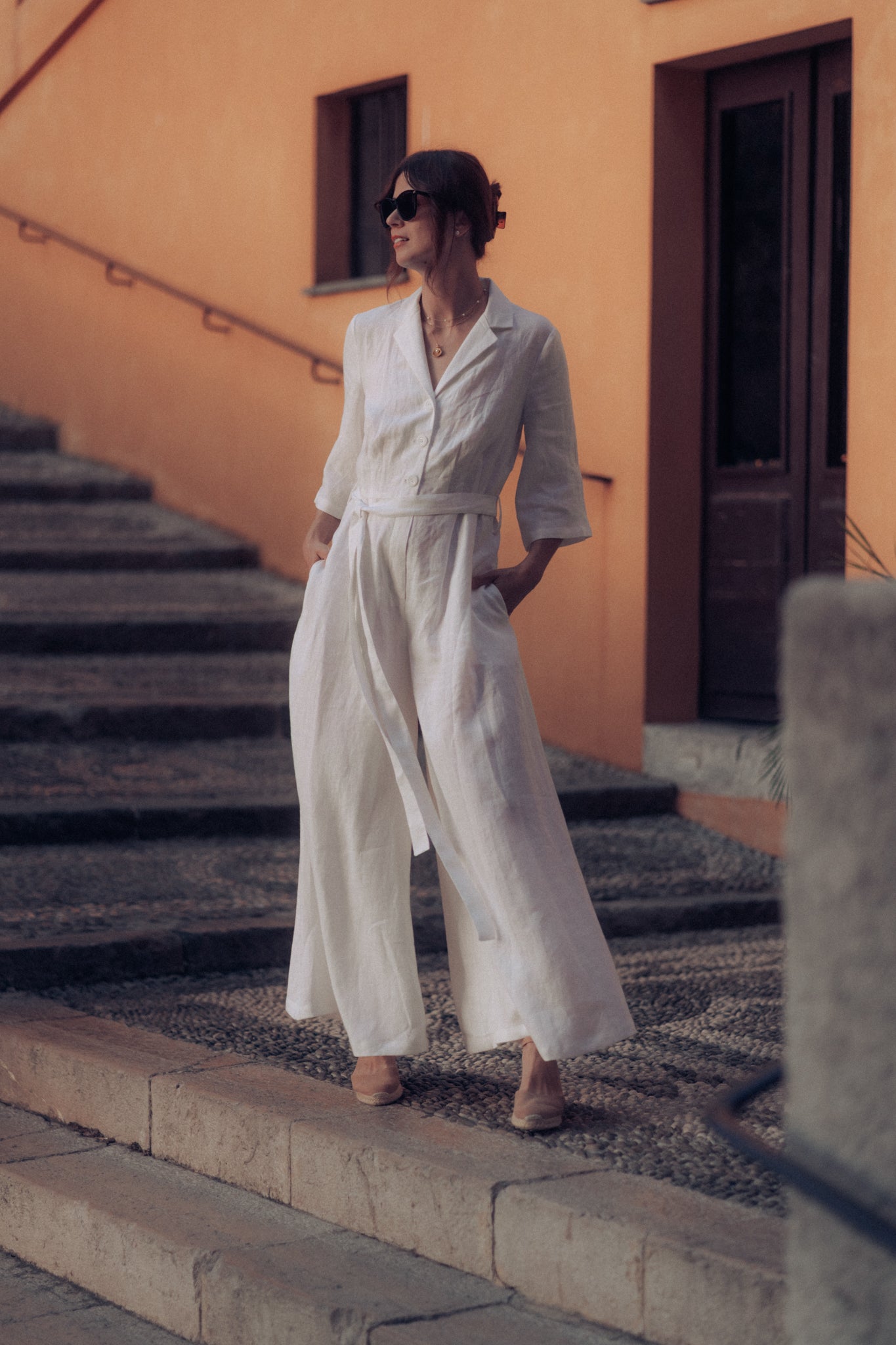 Elevate your wardrobe with our Gabrielle Linen Jumpsuit — a refined essential that exudes effortless sophistication. Crafted from breathable, high-quality OEKO-TEX® certified linen, this jumpsuit features a classic, timeless silhouette designed to flatter every figure. Its clean lines and tailored fit make it the perfect choice for elegant beachside dinners or strolling through sun-soaked streets. Minimalist yet striking, it’s resortwear redefined with quiet luxury in mind.