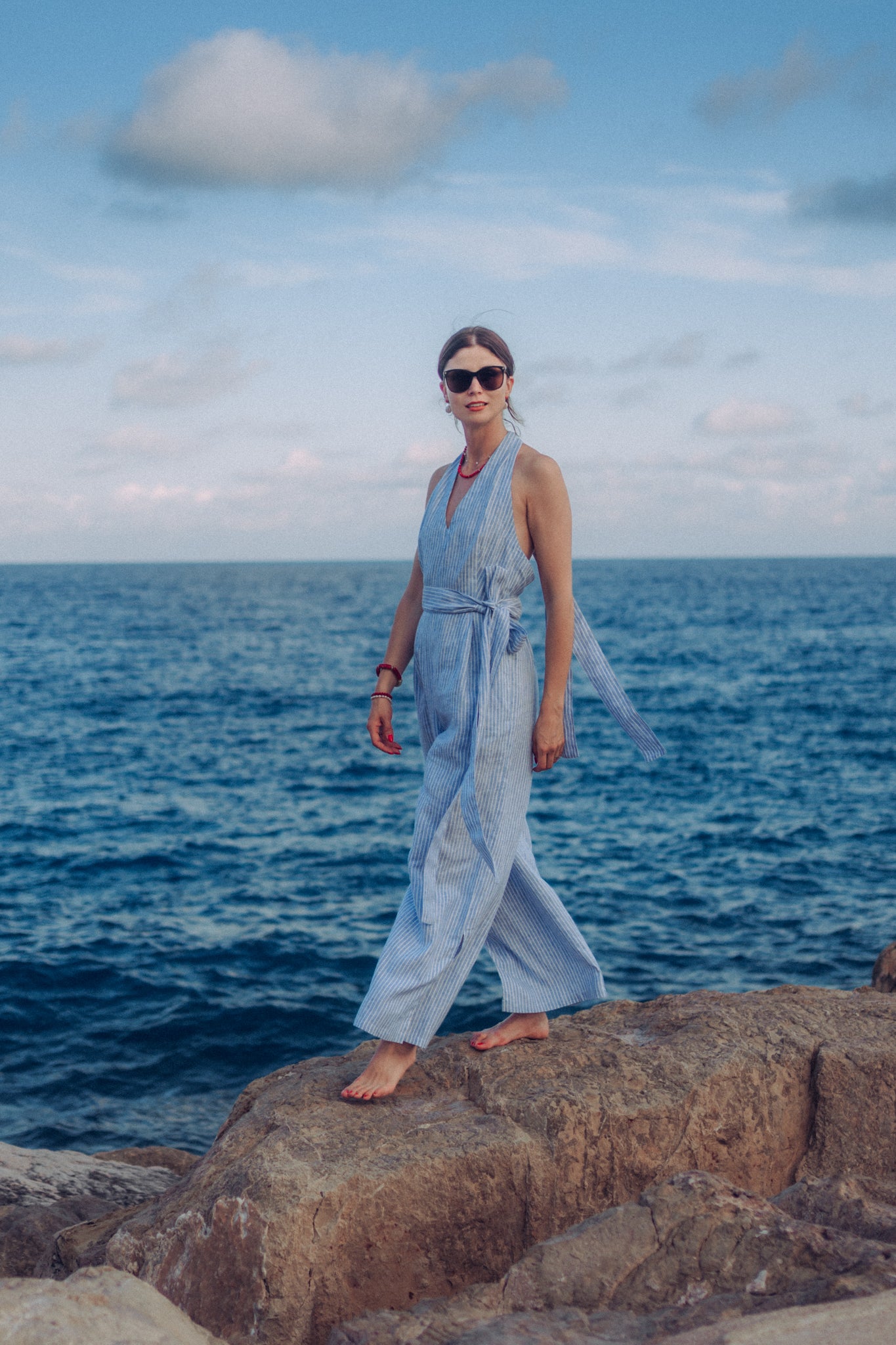 Discover our Marion striped jumpsuit made of 100% lightweight linen designed for fun and play. This travel-friendly timeless piece is comfortable, chic and ideal for walks on the beach, setting sail or escaping, in style.